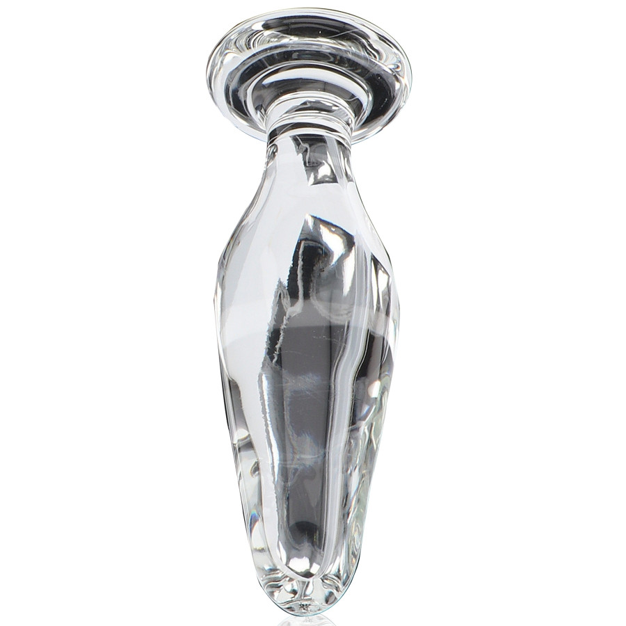 Plug en verre de 11 cm de longueur insérable et de 3.5 cm de largeur maximale.Surface lisse.Base plate.