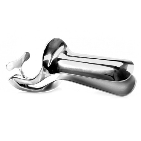 Cet accessoire est un spéculum Collins réalisé en métal. C'est-à-dire qu'il s'ouvre sur la largeur pour écarter l'intérieur du cul de façon importante.Il est composé de branches de 10cm de long qui s'insère dans le rectum.La largeur intérieure va de 2 à 11cm environ.L'ouverture extérieure va de 2 à 5cm environ.