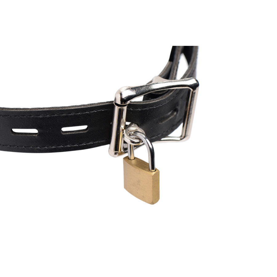 Cet accessoire SM est un masque muselière réalisé avec une matière très solide.Elle possède des trous d'aération pour un confort plus important.