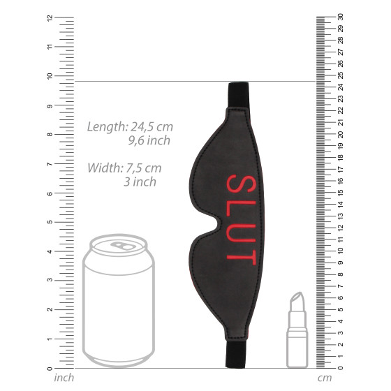 Ce masque Slut est un accessoire idéal pour cacher les yeux et donner plus d'intensité lors du moment SM.Il est conçu avec le mot "Slut" sur le devant, qui siginifie "lope", "soumis".Avec un élastique derrière la tête pour le maintien.