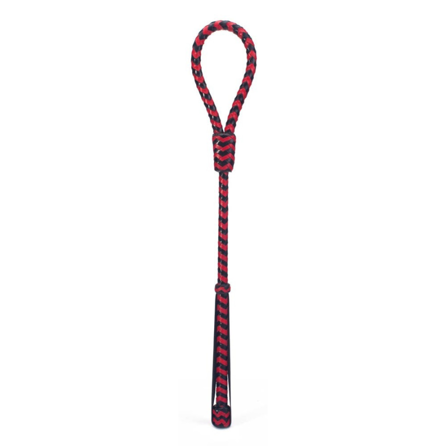 Cet accessoire est une cravache noire et rouge réalisée en matière Cuir.Elle est composée d'une longueur totale de 50cm avec une boucle à l'extrémité. Forme rigide pour pouvoir taper le partenaire dans les moments de soumission.