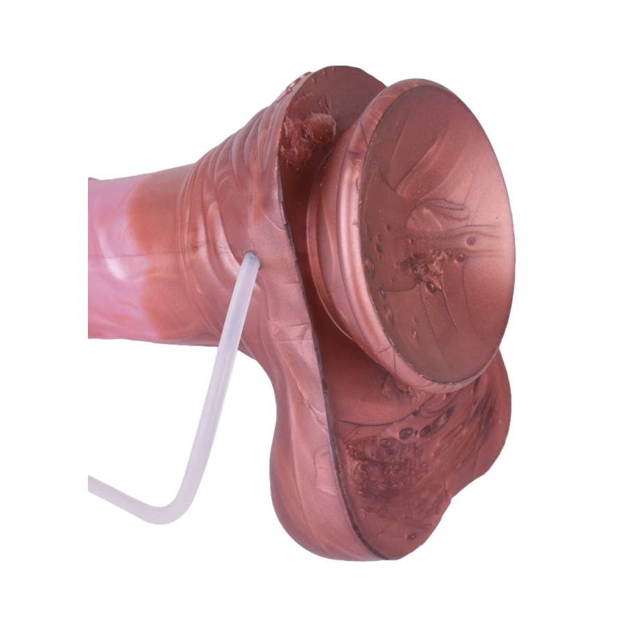 Le gode Horse éjaculateur Atlas est réalisé avec une forme de sexe de cheval. Il peut simuler une éjaculation grâce à la seringue ou la poire qui permet de projeter le liquide.