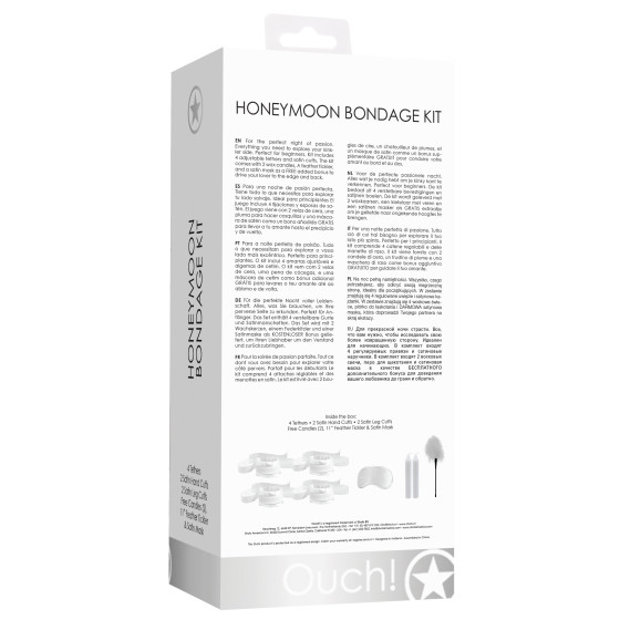Ce kit Bondage HoneyMoon de la marque Ouch! est composé de 4 pièces pour des moments BDSM.Il est créé avec :