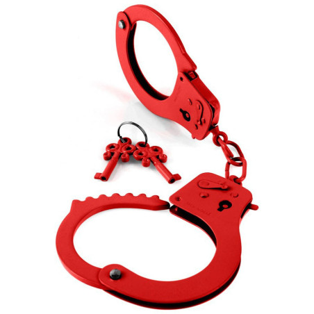 Ces menottes en métal sont rouges.Elles sortent de l'ordinaire et permettent de pimenter encore plus la vie de couple.La couleur rouge est excitante !