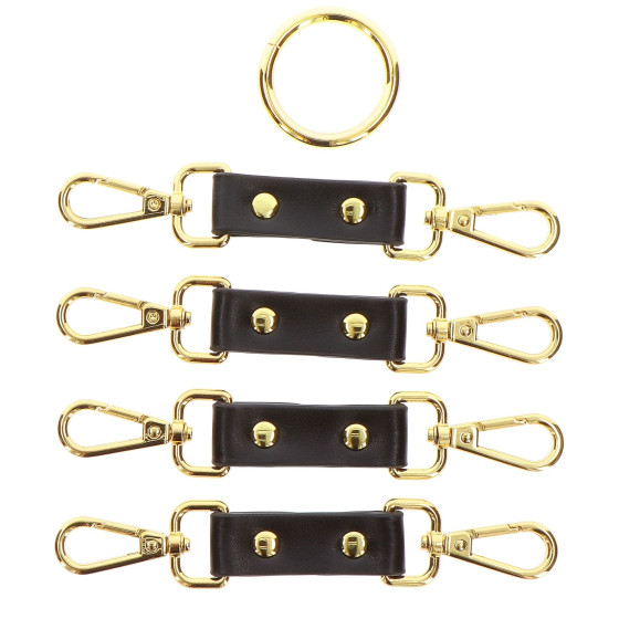 Attaches en croix noires et dorées avec 4 attaches et mousquetons.
