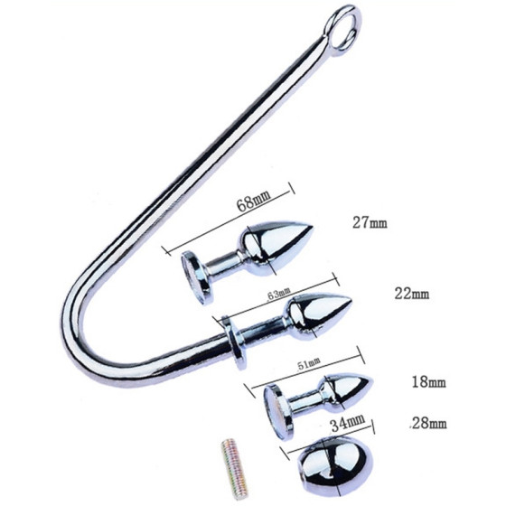 3 plugs de 5 x 1.8cm, 6 x 2.3cm, 7 x 2.7cm 1 boule de 3.4 x 2.7cm sans butée pour insérer le crochet entièrement.