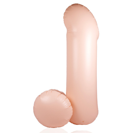 Inflatable penis with an approximate height of 140 cm and diameter of 30 cm.