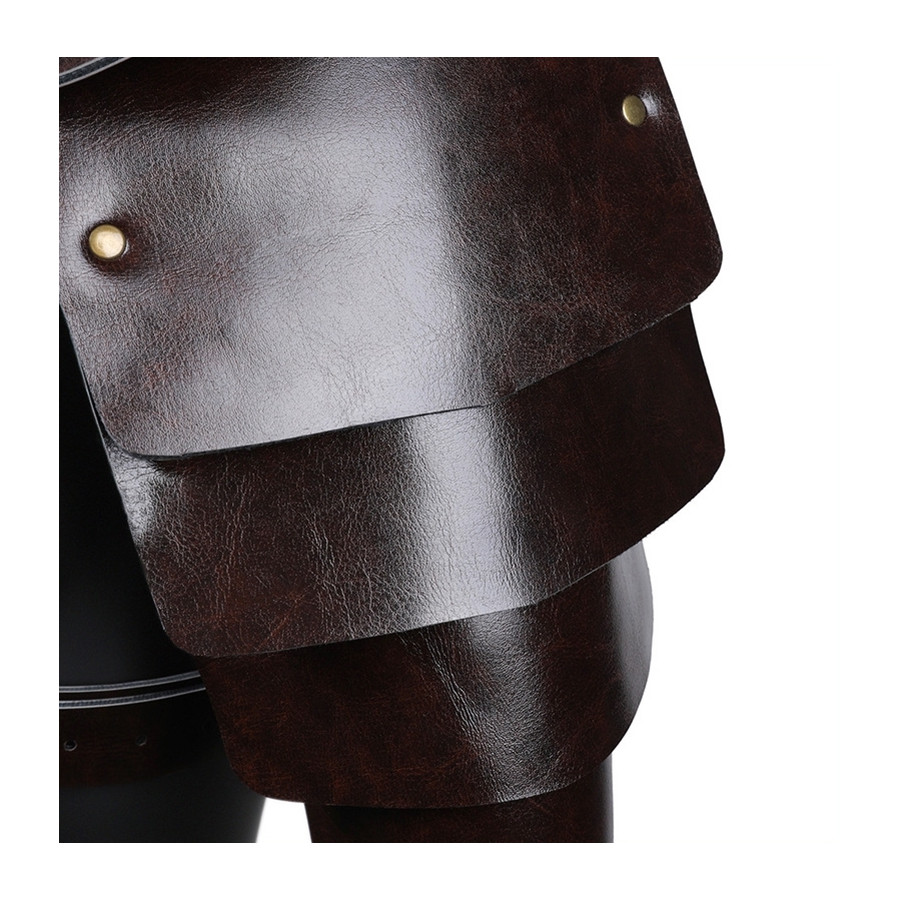 Ce harnais Armure Vintage Armor est conçu avec des épaulettes qui couvrent les épaules et donnent un style armure, des parties latérales sur les bras et des sangles ajustables en croix sur le torse et le dos.