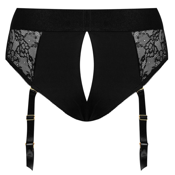 un tissu fin dentelle sur les côtés la partie arrière avec une ouverture sur les fesses l'anneau de 40mm de diamètre pour placer un gode les soutiens pour jarretelles. En version Taille L. Composition : 75% polyamide, 25% élasthanneBoxed: