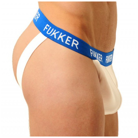 Le jockstrap de la gamme Fukker est ici dans sa version blanche et bleue.