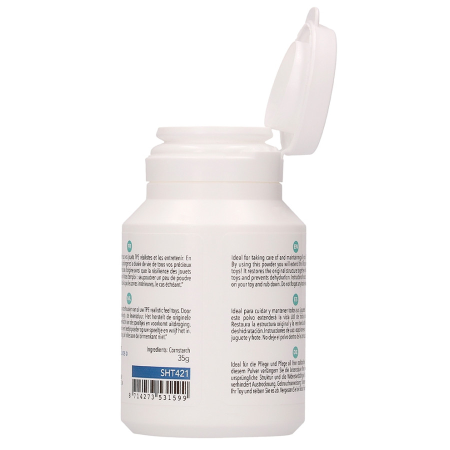 Cette poudre d'entretien est proposée sur le sex shop par la marque Shots. Elle permet d'entretenir les sextoys fabriqués en matière TPE.Elle s'applique sur les jouets après le nettoyage et redonne la même texture qu'avant.