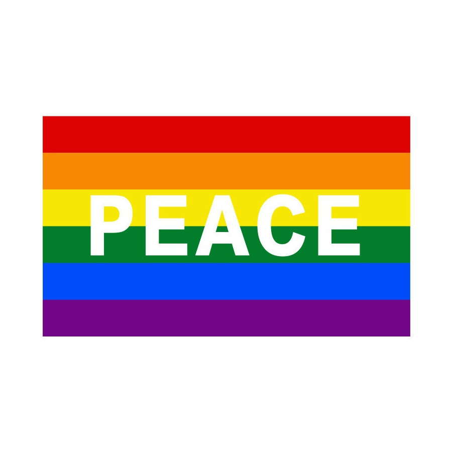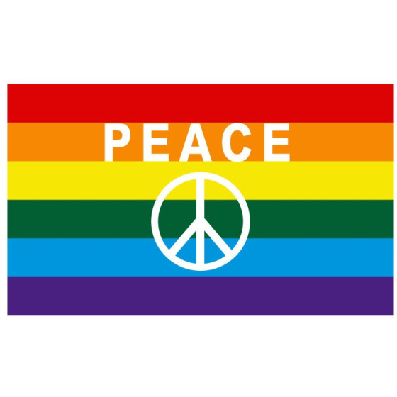 Ce drapeau Rainbow possède les couleurs Arc-en-ciel et le mot "Peace" signifiant "Paix".