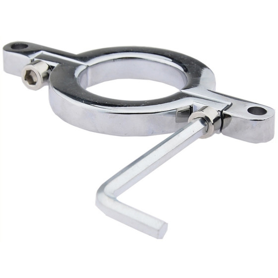 2 anneaux de 35mm de diamètre insérable avec 2 vis de 9.5cm de long pour y faire glisser les anneaux et étirer les testicules une plaque comportant 6 pointes amovibles de 2cm de long pour écraser les bourses.Cumulez étirement, écrasement et douleur.