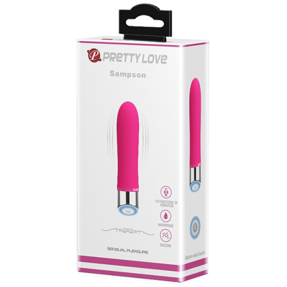Le vibro Sampson de la marque Pretty Love est un sextoy rose de 12cm de long et de 2.7cm de large.Il possède 12 modes de vibrations pour rendre le moment coquin encore plus plaisant et excitant.