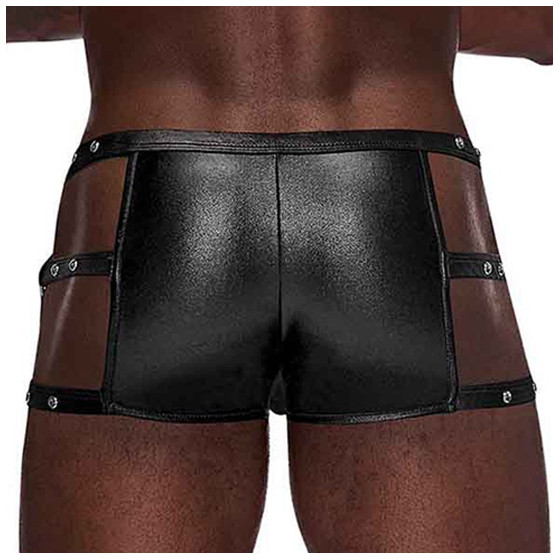 Le boxer Vulcan de la marque Male Power est composé de bandes élastiques qui font un effet cage sur les cuisses.Avec des rivets et des anneaux en métal.