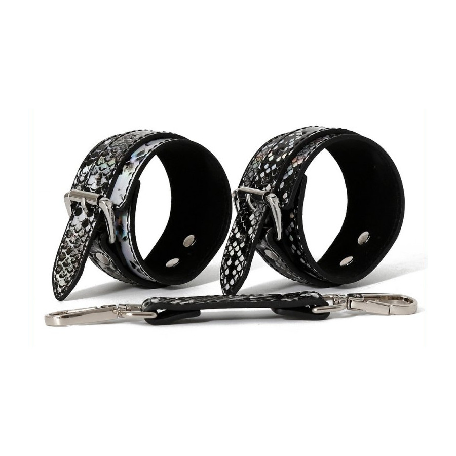 Ces menottes de poignets sont réalisées avec une surface "peau de serpent". Cela donne un style sexy pendant le jeu coquin.Elles ont une largeur de 4cm. Le tour de poignet va de 17 à 25cm.