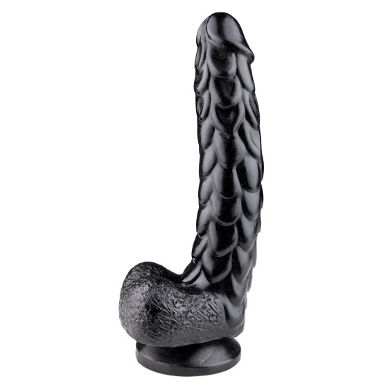La forme est droite avec un relief en écailles apportant des sensations intenses et excitantes. Le plaisir est autant présent lors de l'insertion que lors du retrait. il possède une ventouse.