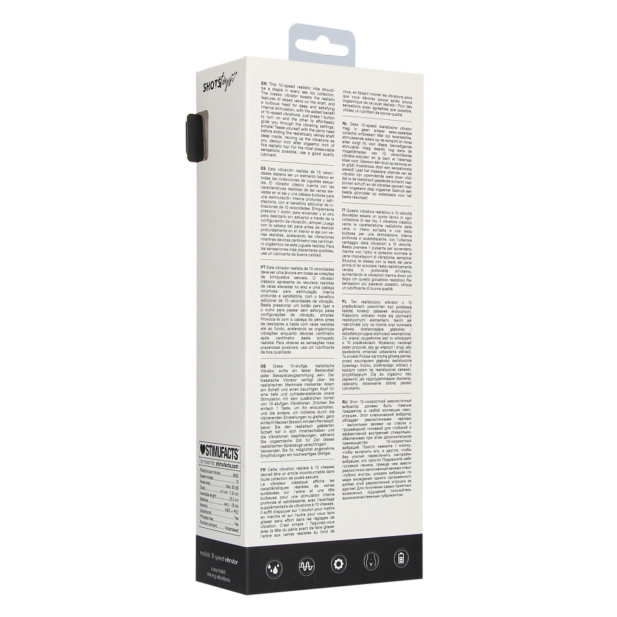 Le gode vibrant Realistic Up est un sextoy noir de la marque ShotsToys conçu avec une forme réaliste.Il possède un gland sans prépuce et une surface fortement veinée pour des sensations très excitantes.La longueur insérable est de 20cm. La largeur est de 4.6cm.
