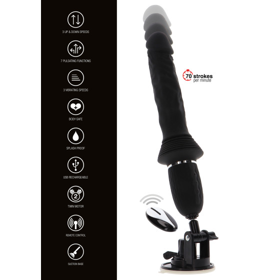 La Fuck machine portable MAGNUM OPUS PRO est idéale pour une baise en solo et sans les mains.Elle se fixe sur une surface plane avec la ventouse et s'actionne avec la télécommande.