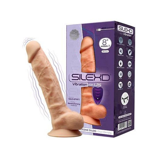 Le gode vibrant télécommandé SILEXD Modèle 1 est ici dans sa version avec la taille 8". Il a une forme réaliste avec un gland sans prépuce, une surface veinée et la forme des bourses.Il a une longueur insérable de 16.5cm et une largeur de 4.5cm.Avec 10 modes de vibrations (avec télécommande).