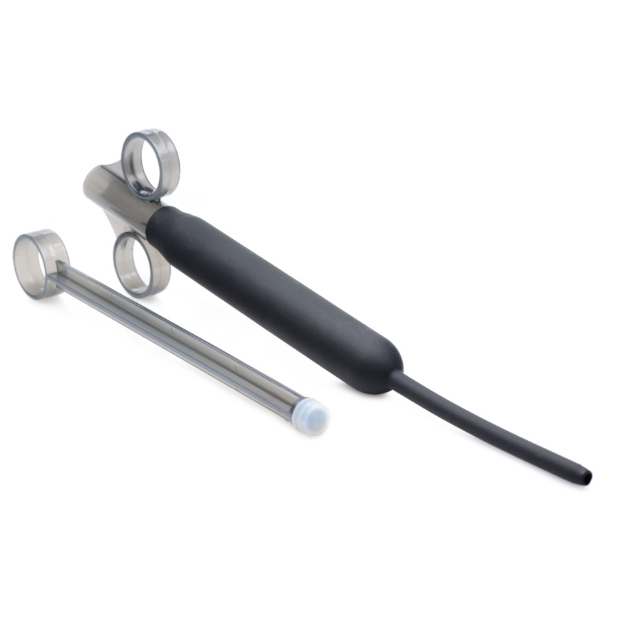 Cet accessoire est idéal pour placer du lubrifiant facilement dans les zones de plaisir.Il se compose de la seringue de 12cm de longueur insérable et 2cm de largeur.Avec un embout supplémentaire en silicone permettant une insertion sur 21cm, avec une largeur de 6mm.