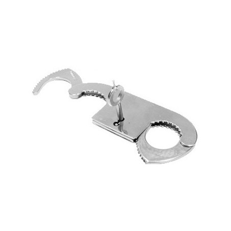 Ces menottes en métal sont idéales pour bloquer complètemet les mains de votre partenaire.Elles sont réalisées dans le même bloc pour que l'empêchement soit encore plus prégnant.Pas de chaîne, juste un seul accessoire avec les deux trous de menottes et les ouvertures faciles avec clé