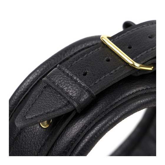 Ce collier noir est réalisé en faux cuir avec un confort parfait pour allier l'utile et l'agréable.Il est rembourré à l'intérieur et est muni de chaînes de fixation couleur dorée