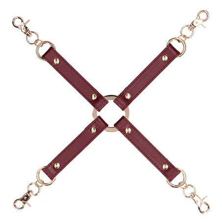 Ce Hogtie rouge de la marque Ouch! est conçu pour attacher les menottes entre elles.Il a des bandes fines de 1.8cm et des attaches en métal doré.Dimensions 38 x 38cm.