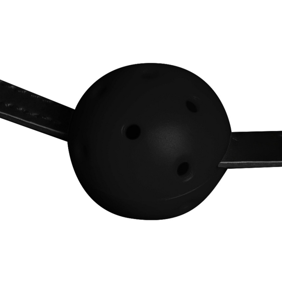 Muselière avec un bâillon à l'intérieur. Boule de 4 cm de diamètre. Elle est en TPR.Les sangles sont ajustables.