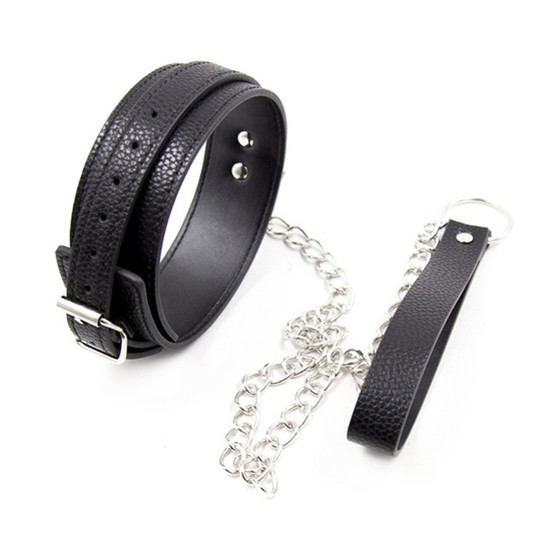 Ce collier en simili noir est créé avec une largeur de 4cm afin de rester discret sur le cou. Il s'ajuste facilement.La laisse est sous forme de chaîne en métal de 57cm.