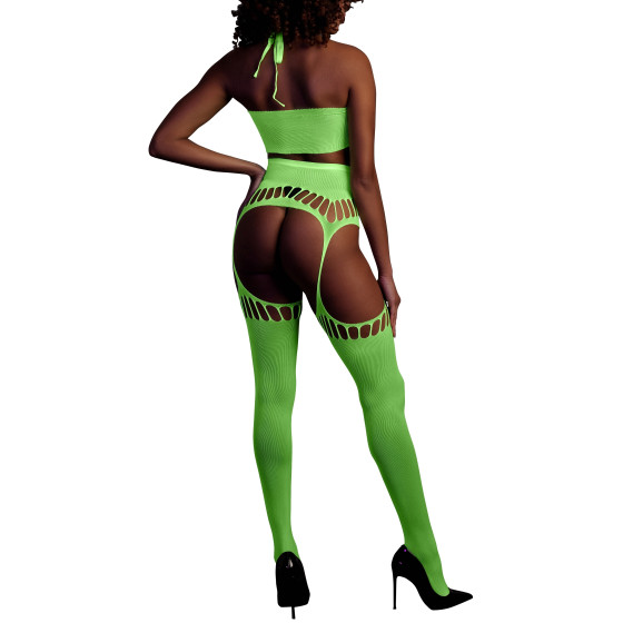 • Ensemble Bustier Dos nu et Porte-Jarretelles 2 Pièces Vert Fluo
