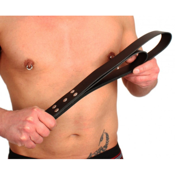Ce paddle double en cuir de la marque The Red est un accessoire Sm idéal pour les moments de soumission. Il est composé d'une double bande de cuir venant claquer la peau et les fesses.