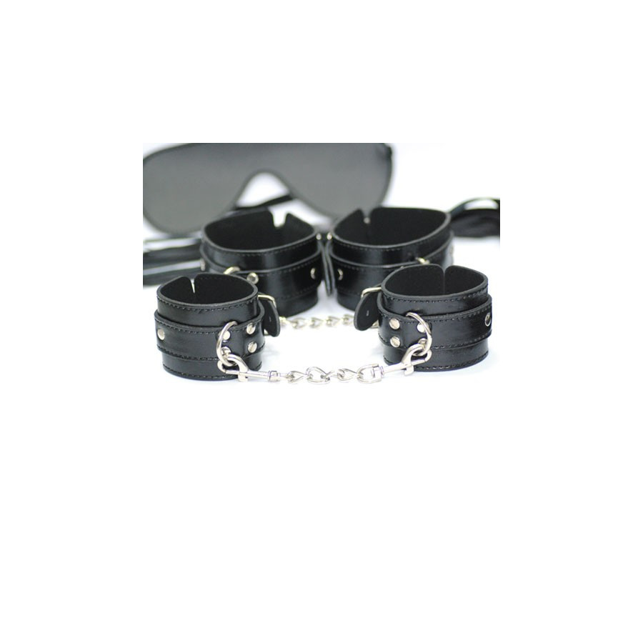 Retrouvez un kit de soumission complet qui se décompose de quatre accessoires très utiles ! Une paire de menottes, une paire de menottes de chevilles, d'un bandeau pour les yeux et d'un fouet. De quoi vous amusez avec votre partenaire. Kit pratique pour débuter la soumission !