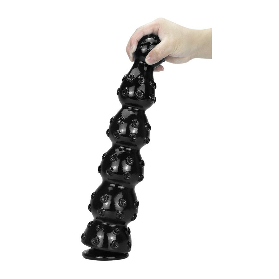 Le gode Zeus est conçu avec 6 boules texturées avec des sortes de ventouses. La largeur est progressive et va de 5.5 à 8.5 cm.