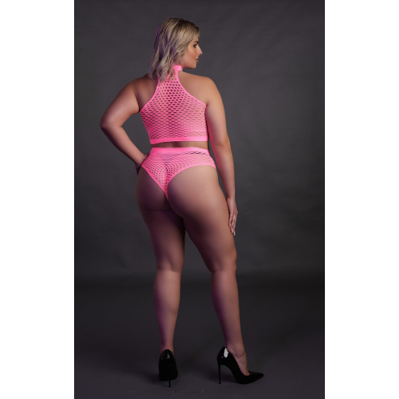 • Ensemble Bustier et Culotte Filet Rose Fluo