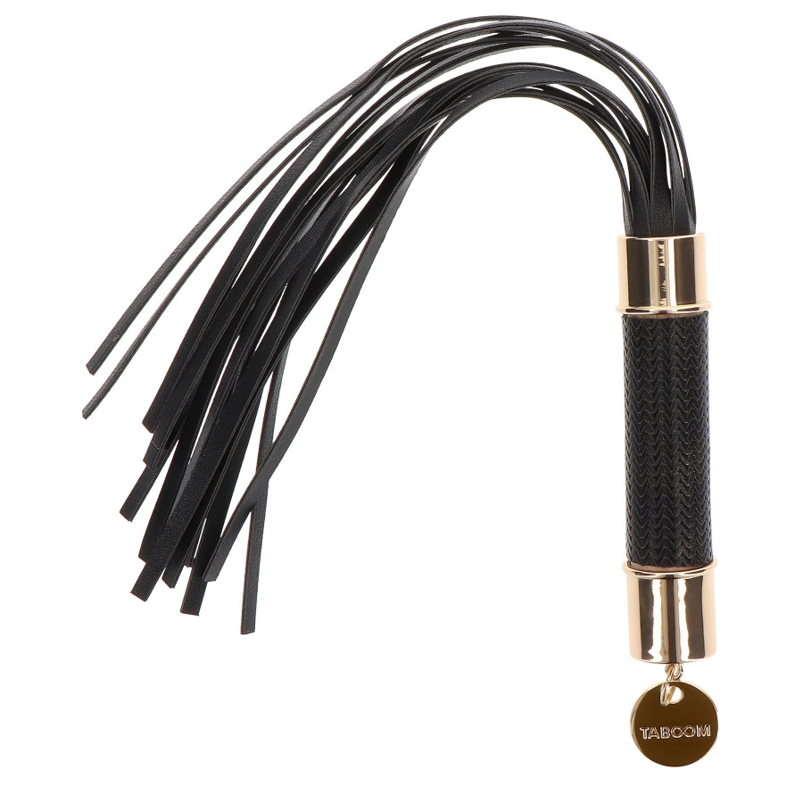 Le martinet Signature de la marque Taboom est un accessoire composé de lanières souples en simili de 22cm.Le manche est conçu avec des bordures en métal doré.