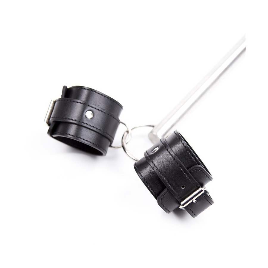 La barre métallique mesure 50cm.Les menottes sont réalisées en faux cuir